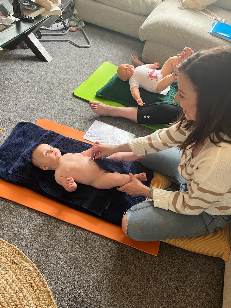 individually at home, the main benefits are bonding, relieving colic, reflux and constipation and promoting relaxation for better sleep.