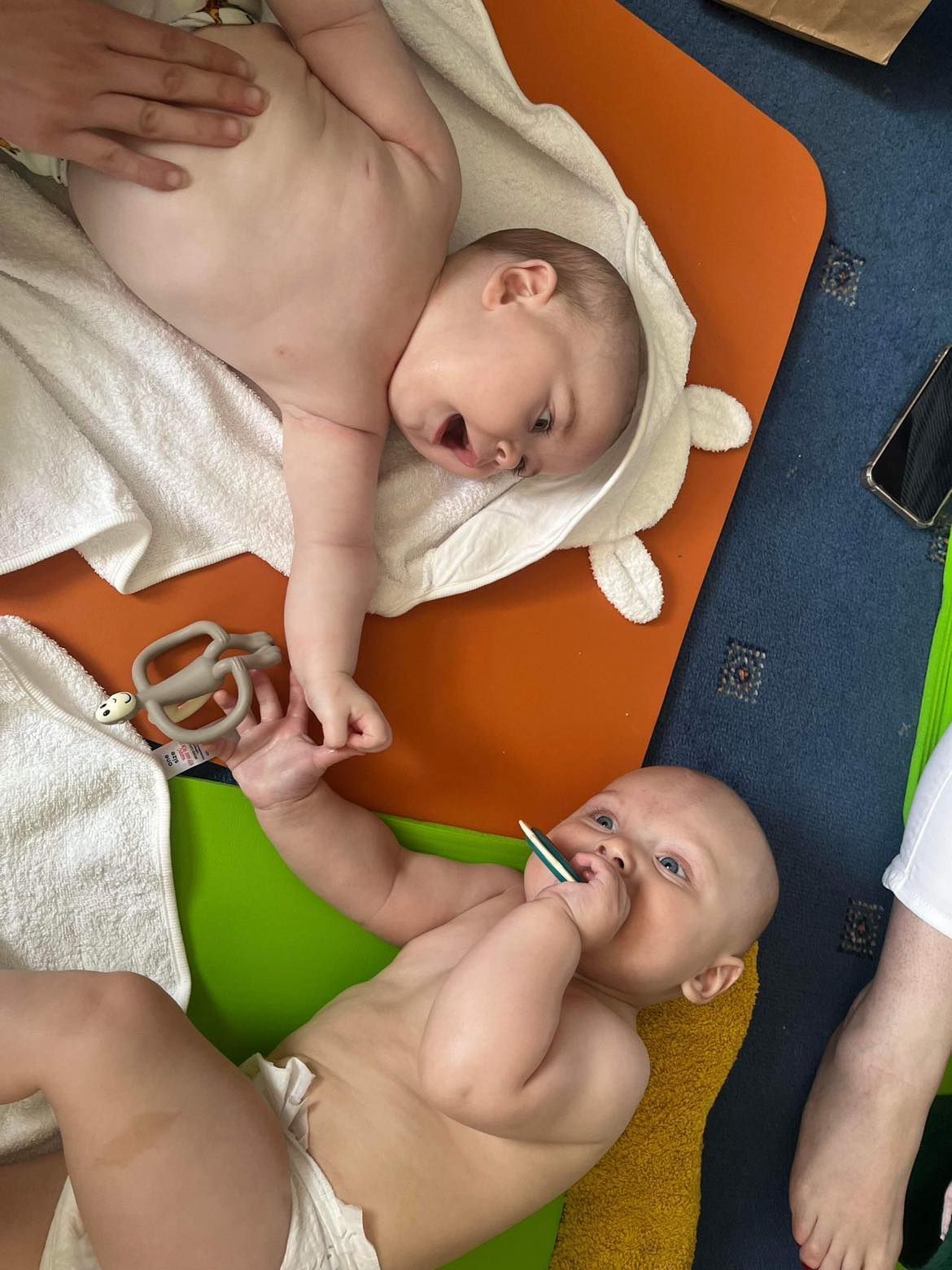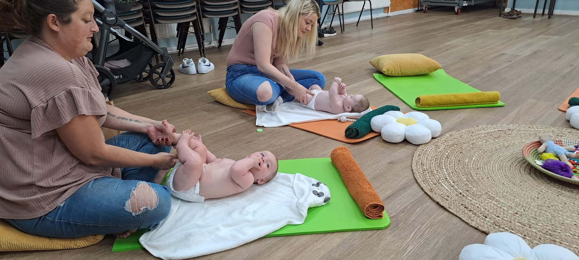 - All the sessions are baby led and the massage classes are 1 hour in total. Massage on the first session will be 20 minutes so not to over stress babies who are not used to massage. We then build up to 30-35 minutes maximum over the next few sessions.